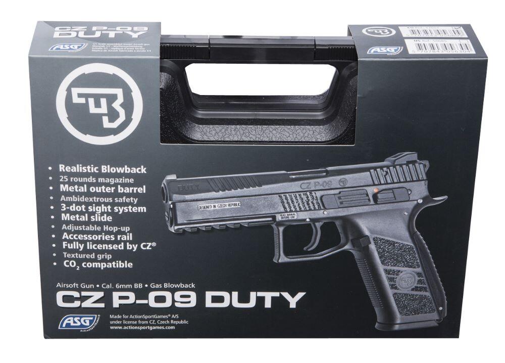 The CZ P-09 is a full-size tactical Airsoft pistol with an integrated rail for mounting light and/or laser. Manufactured under license from CZ, this airgun is designed from the original technical drawings, resulting in a realistic look and smooth handling. Its blowback function makes the metal slide move with every shot fired, creating strong recoil, adding to the shooting experience.