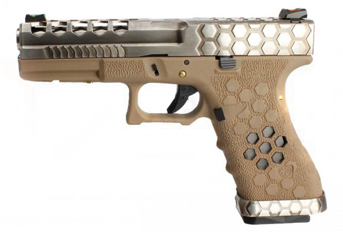 Pistolen er bygget op omkring Glock fænomenet, men er lavet med en hexagon cuts for at lette slæden.