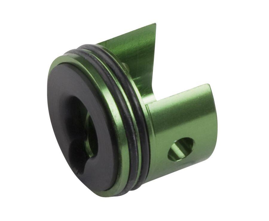 The ULTIMATE® Upgrade Series cylinder head have been CNC manufactured in machine-aluminium and thereafter anodized with a colour code for easy recognition. The heads have been designed with double rubber seals to minimize loss of compression from the cylinder. The special ‘trumpet design’ ensures optimal delivery of air to the barrel/BB. Furthermore, the cylinder heads have a powerful built-in rubber band that absorbs the shock from the piston head.