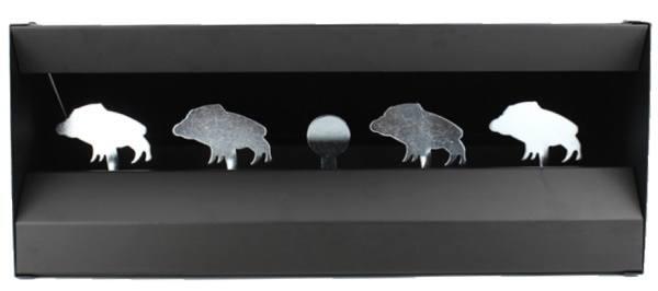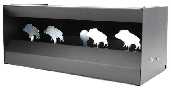 Denne skydekasse er lavet i metal og har 4 metal vildsvin indeni som mål