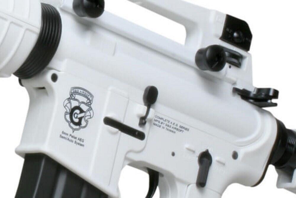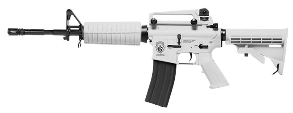 En spændende M4A1 riffel der passer fint som begynder våben, og med dens hvide dele passer godt ind når det sner.