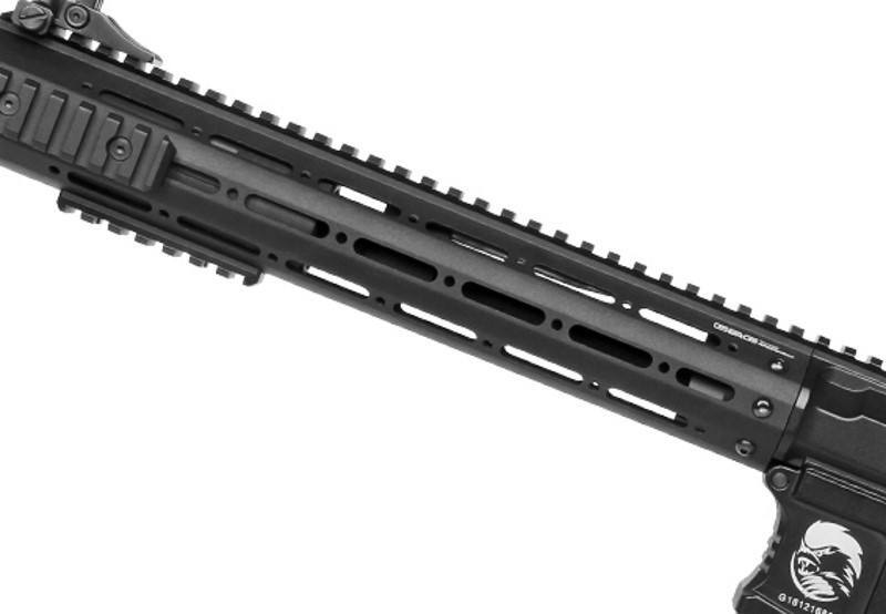 Selve riflen er konstrueret i fuld metal og kommer med et keymod rail system.
