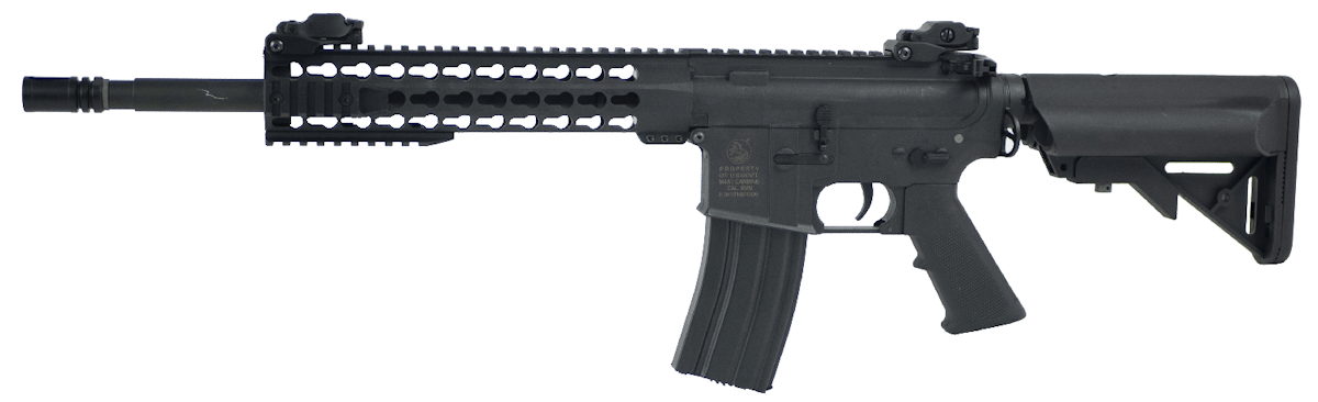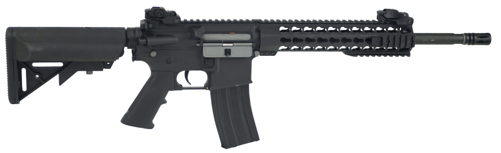 Denne riffel er lavet i nylon fiber, hvilket holder vægten nede, som gør at man ikke bliver træt i armene af at løbe rundt med den.