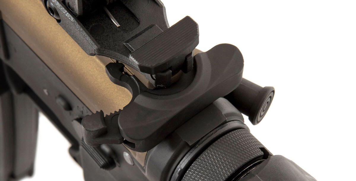 Riflen kommer ud af boksen med 2 mid-cap magasiner inkluderet, og har internt en Gate Aster