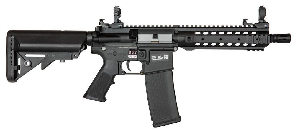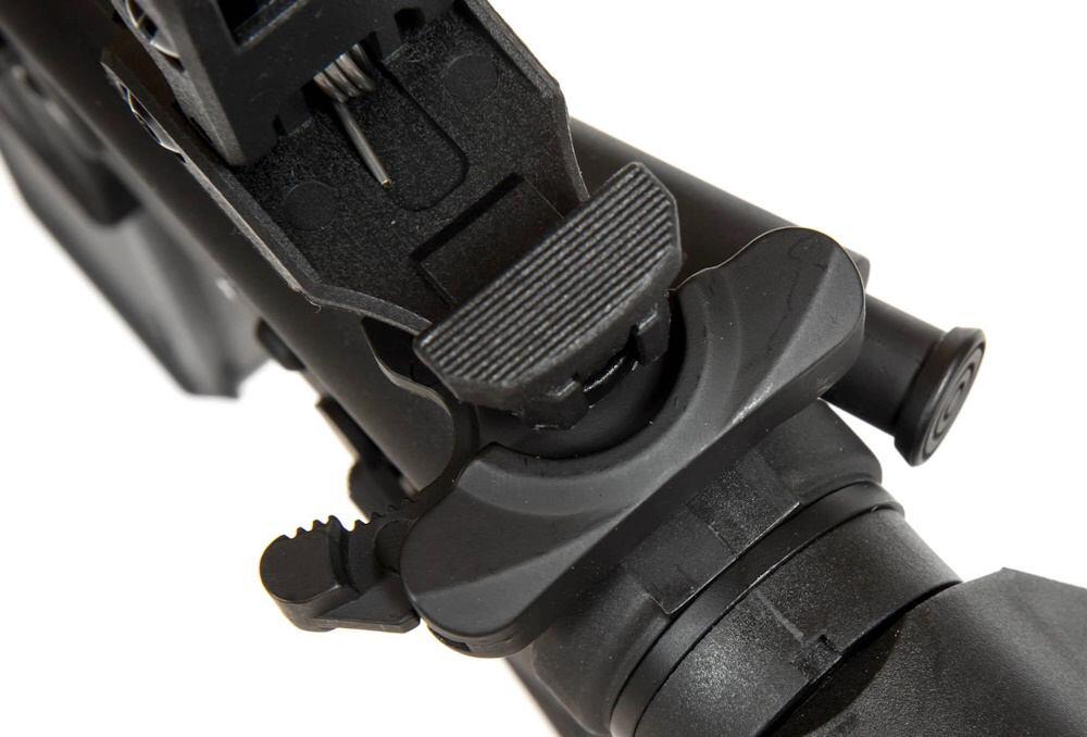 Riflen er konstrueret i let polymer, hvilket holder vægten nede og gør den perfekt til CQB med dens korte længde.