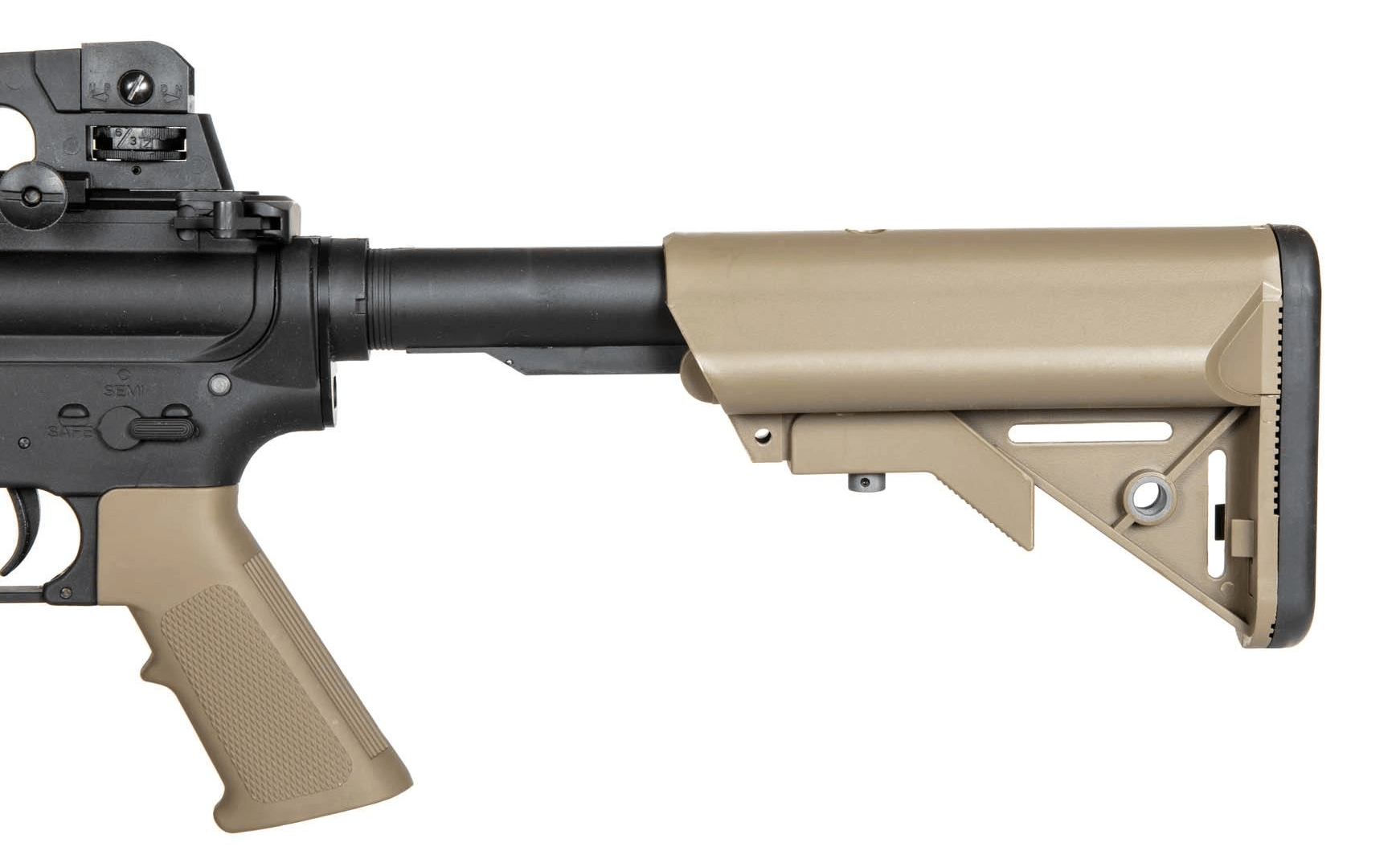 Riflen kommer ud af boksen med P-løb, Mosfet samt quick change fjeder, hvilket normalt ikke findes i denne prisklasse