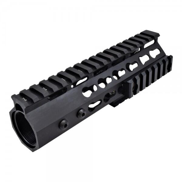 7 tommer slank softgun keymod håndguard der er lavet i anodiseret 6061 aluminium og er egnet til m4 og andre kompatible hardball rifler.