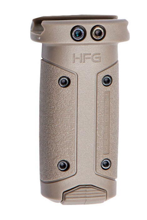 HERA Front grip (HFG) is an easy to install vertical front grip made out of fiberglass reinforced polymer. It is short and compact with a slim snag free profile. The exterior has a modern design with textured grip surfaces. There is an internal storage compartment that can be used to store a small tool kit.