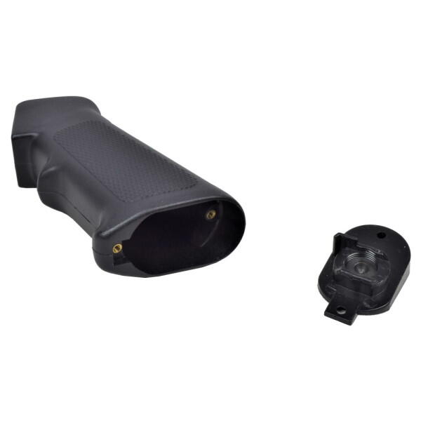 Skridsikkert mønster på hardball AEG pistolgrebet der er lavet af polymer og en bundplade der er lavet i metal