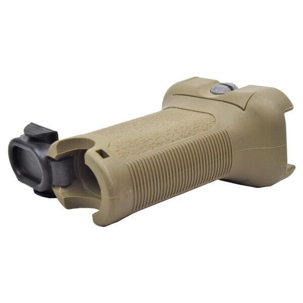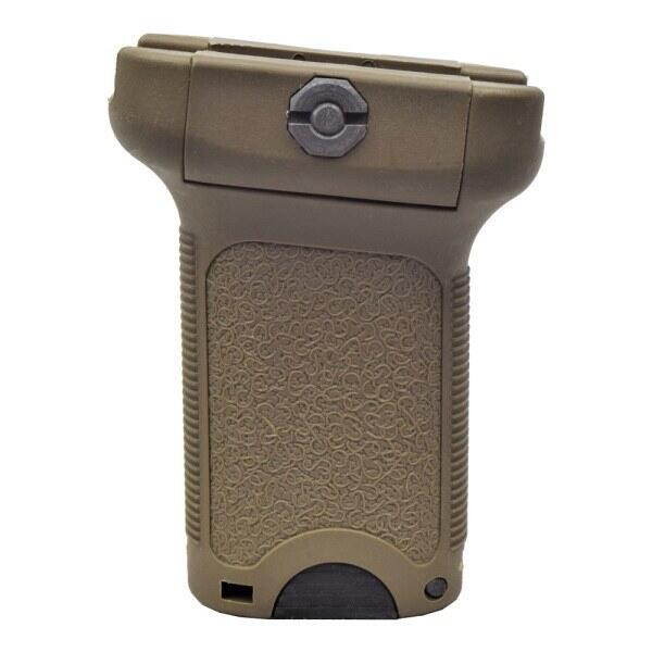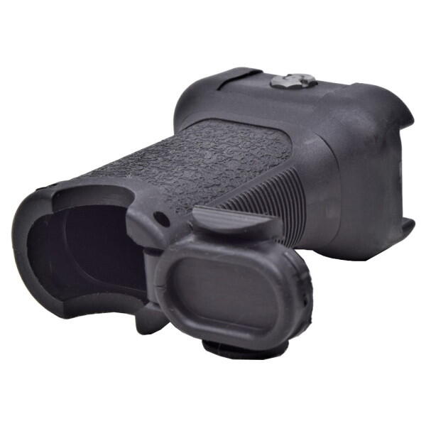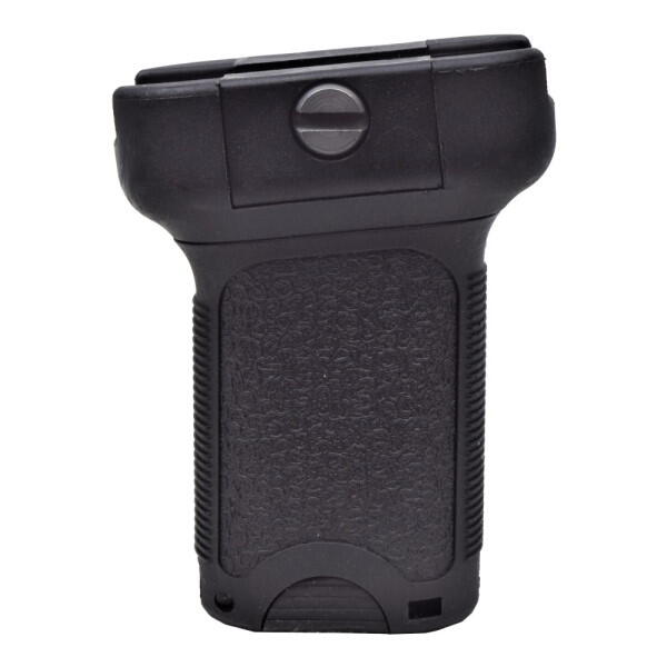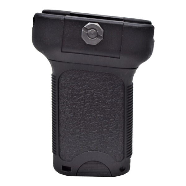 Kort lodret greb i polymer med skridsikker mønster, der passer standard 20 mm rails