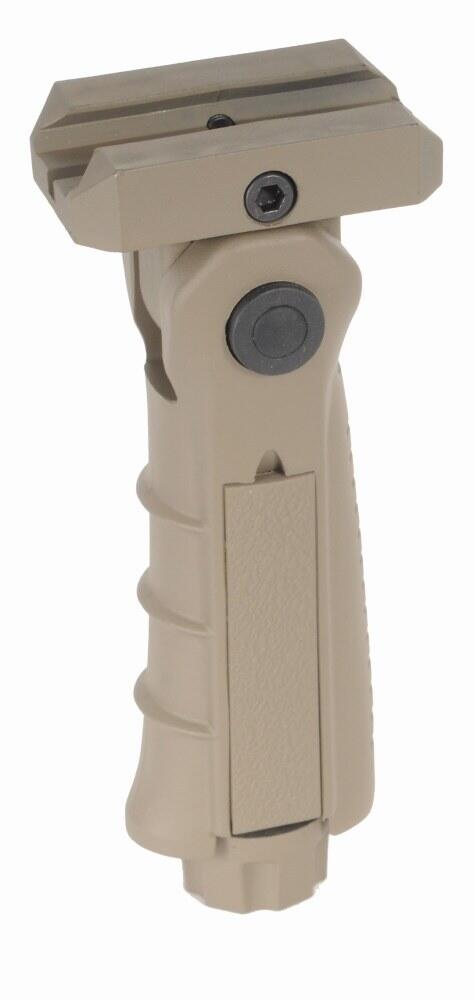 Grebet kan bruges til alle hardballvåben som har standard 20mm rail, grebet er justerbart i vinklen samt så kan det også foldes sammen.