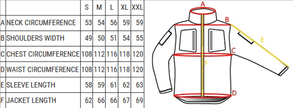 Denne jakke findes i størrelserne: S, M, L, XL, XXL