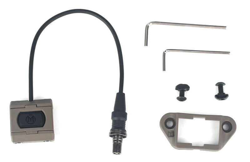 Selve lygten kan monteres på alle standard airsoft rail systemer, preassure switch kan monteres på enten M-lok, Keymod eller normal Picatinny