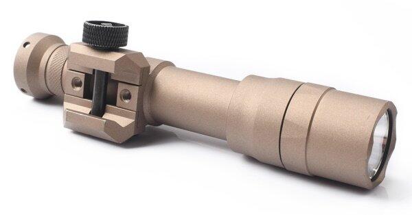Denne lygte kan monteres på alle 20mm rail systener. Den monteres ved hjælp af en fingerskrue på siden af lygten, dette gør at man kan tage lygten hurtigt af og på riflen.