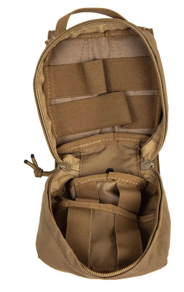 Med tasken følger et Molle-panel, hvor pouchen kan fastgøres med velcro. Panelet er udstyret med et spænde, der sikrer medic lommen mod tab.