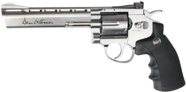Flot og elegant 6” revolver softgun god og hård skydene. Den har autentiske markeringer og et individuel serienummer stemplet ind i rammen. Revolveren er udstyret med en dobbelt handling udløser-system og justerbare bageste sigte for ekstra realisme og nøjagtighed. Dan Wesson revolveren er lavet af metal, undtagen det ergonomiske greb konstrueret i hårdt ABS plastik. 12g CO2 patronen er gemt i grebet og er let tilgængelig ved at skubbe grebet tilbage - easy-load stil. Hver af de 6 patroner kan holde en 6mm BB og placeres i tromlen, der roterer som hver runde bliver affyret. Revolveren kommer med speed-loader, monterbare taktiske rail og 6 patroner.