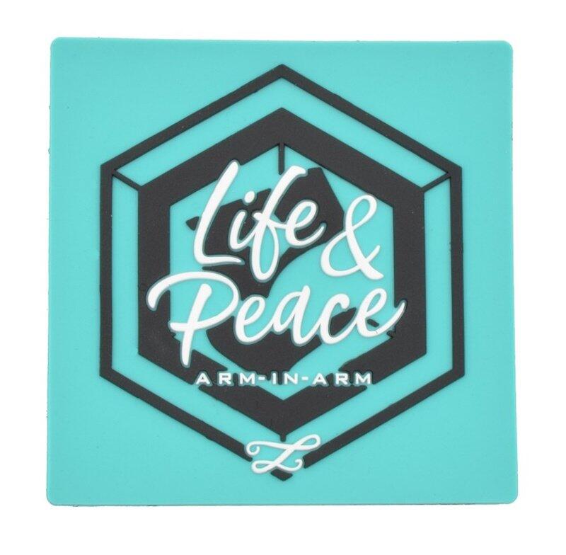 Sjovt lille Arm in Arm "Life & Peace" velcro mærke i blå