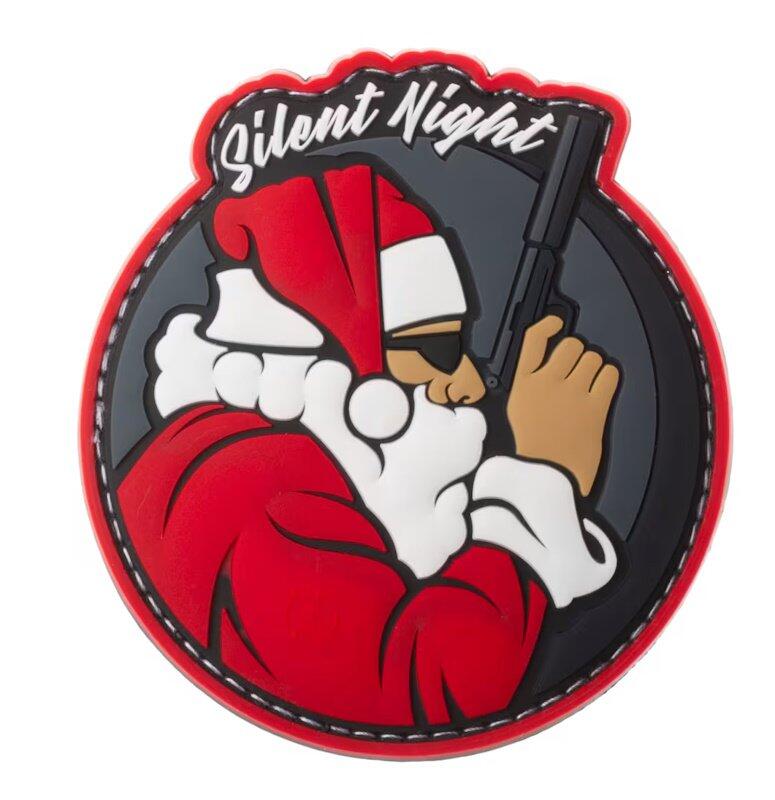 Sjovt PVC Patch med julemanden som en "hitman" med lyddæmpet pistol