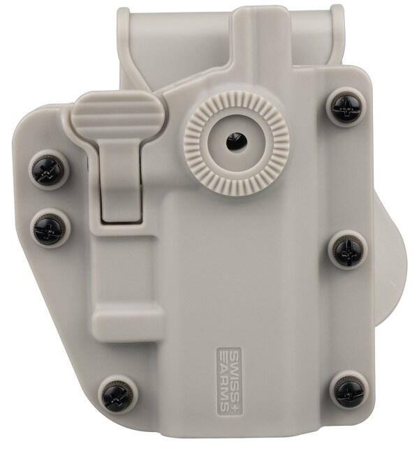 Hylsteret kan drejes i vinkel på 360 grader, i kassen er en montageplade til bælte montering, pistol hylsteret kan bruges til både højre og venstre side.
