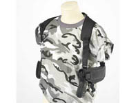 Skulderhulster med magtaske. Polstret mesh skulderpaneler giver kroppen mulighed for at trække vejret for maksimal komfort. Størrelsen er fuldt justerbar, så du kan bære hylsteret skjult eller åbenlyst. Dette hylster kan hurtigt ændres til enten venstre eller højre hånd spillere. Afsikringsrem med trykknap gør det nemt for et hurtigt træk. Et ekstra sikkerhedsstrop holder pistolen sikkert i holsteret under de strengeste aktiviteter.