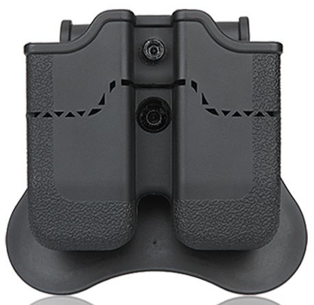 Dobbelt pistol magasin hylster fås i padle, bælteklips, drop ben platform og MOLLE vedhæftning. Alle bæreudstyr kan tilsluttes i fuld vinkeljustering.