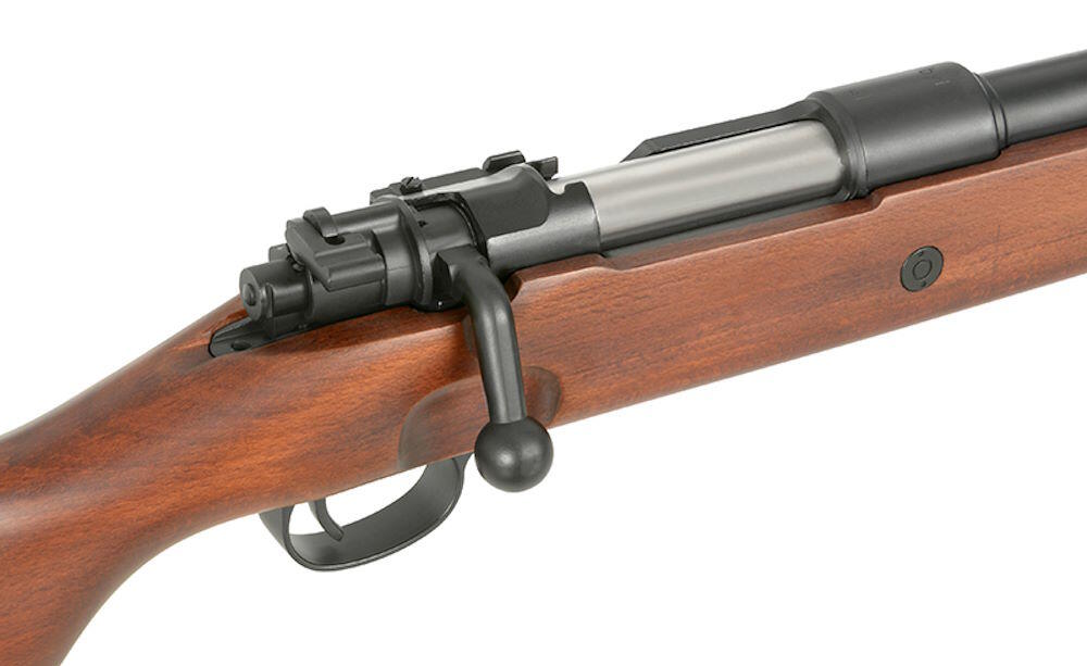 - Dette er modellen med en sigte skinne på siden - så man kan montere det klassiske Kar98k sigte på (Medfølger ikke)