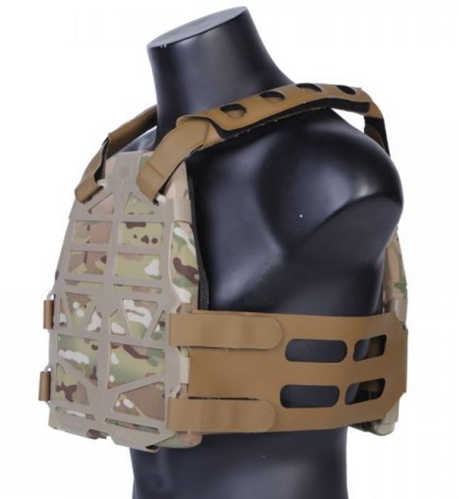 Vesten er lavet i Tan, med et multicam udtræk over selve dummy pladen